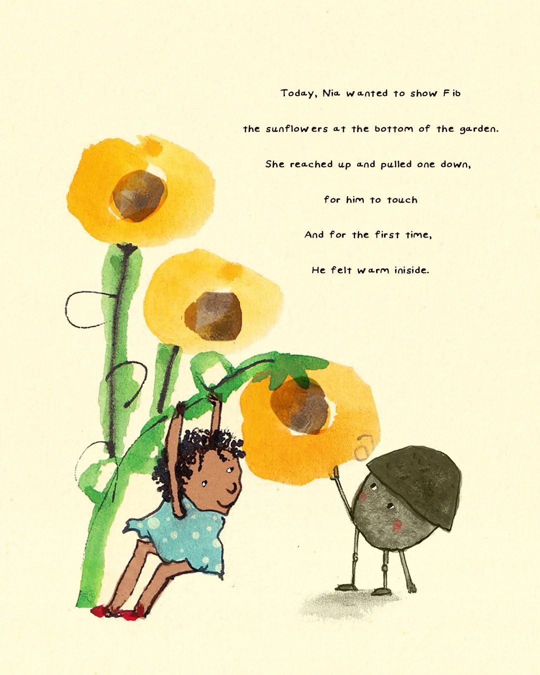 Today, Nia wanted to show Fib the sunflowers at the bottom of the garden.